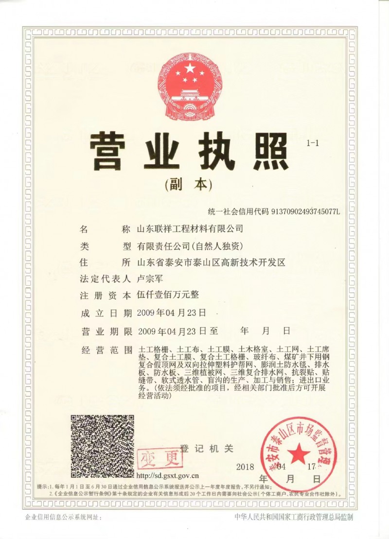 | 發(fā)證機(jī)構(gòu): | 泰安市泰山區(qū)市場(chǎng)監(jiān)督管理局 | 發(fā)證時(shí)間 : | 2018-04-17 |
