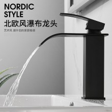 瀑布水龍頭 衛(wèi)生間洗臉盆面盆單孔龍頭 臺上盆臺下盆扁嘴水龍頭