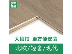 拜爾強化復合木地板家用臥室防水耐磨工程環(huán)保金剛面灰色廠家直銷
